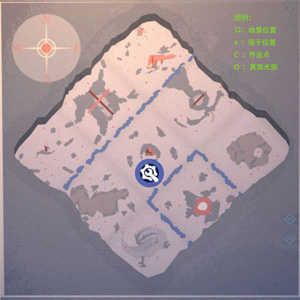 这张图是6张图中最穷的一张图,整个地图周边只有5个地方有地形,WN,NE和S都是只有一个地堡,没有任何箱子,在WN和NE炸桥点的附近还有三狼(WN三白狼,NE三黑狼),打野挖宝的时候一不留神就容易白给。