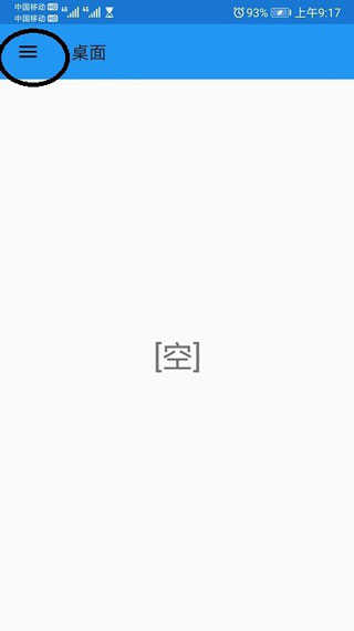 在模拟器中等待加载完成,会出现一个空白的界面,你需要点击桌面左上角的三条杠,