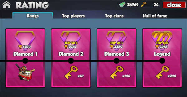 2)“钻石2”等级是指得分在1500分以上的玩家(即得分高于其他钻石等级玩家一半的玩家)中排名“前50%”的玩家。