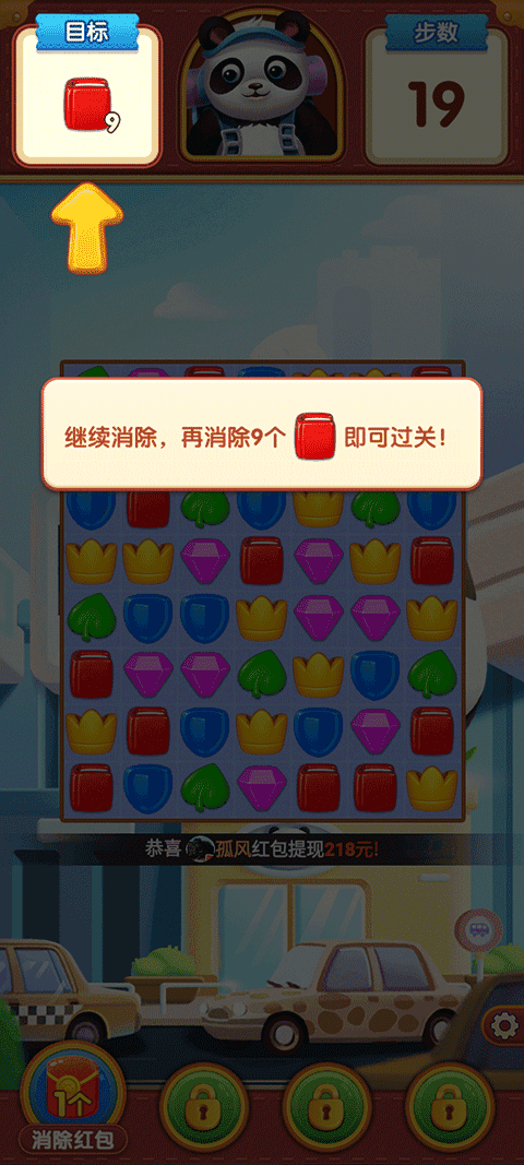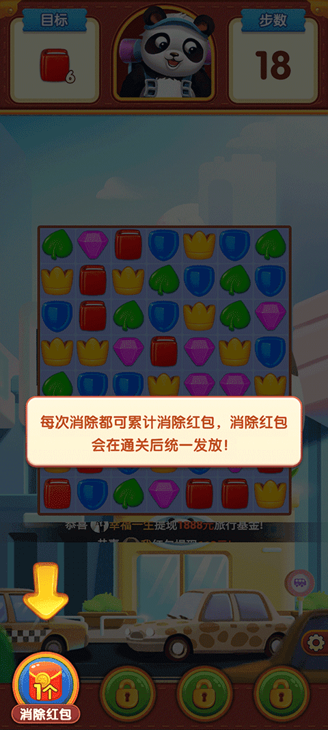 每次消除都可累计消除红包,消除红包会在通关后统一发放;