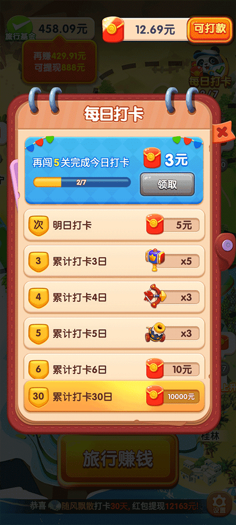 - 标签: 熊猫旅行 红包赚币 消除闯关