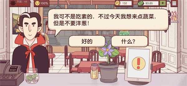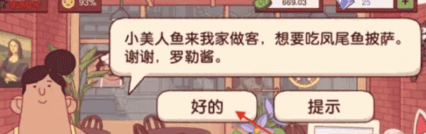客人额外要求罗勒酱,所以将酱料换成绿色的罗勒酱交给客人,即可获得满意回复的小费。