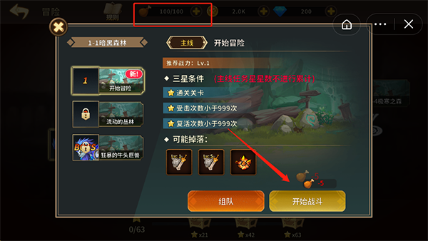 每个冒险关卡都需要消耗五点体力值,体力值上限为100