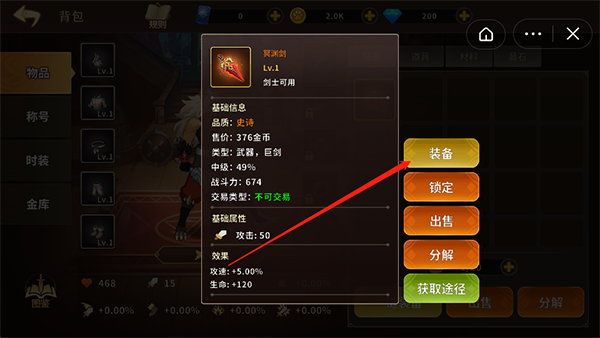 击败boss后有概率掉落强大装备,装备后可增强角色各项属性