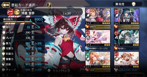 但如果是非常不擅长玩STG的,我个人会推荐以下几位:古明地 さとり-普通弹是能自动瞄准的雷射,初期打Normal基本可以原地站着不动; Break是自机中心扩散的波纹,全方位消弹八云紫-机制上来说是下位版さとり,普通弹也是雷射但不会自瞄,Break同样是波纹河城 にとり-普通弹的攻击范围属于比较广的,开Break后会在自身周围形成一圈防护罩,能消掉进到罩子范围的子弹チルノ-Break和河城一样是防护罩レミリア・スカーレット-这位比较反直觉,因为她的普通弹是攻击距离相当短的锥形攻击,但她开Break后攻击范围会扩张,意外地能挡住来自各种方向的流弹当然,不管你抽了谁,进战斗后还是得靠实力打的毕竟这游戏没有auto2、养成这游戏养成的目标,是将抽到的角色养成[式神(式化 キャラクター)]将一名角色式神化,要经过一次[异变解决]。[异变解决]有三种难度,分别是[Normal]、[Hard]和[Extreme]随着难度增加,敌人的[数值]和[攻击模式]会产生变化