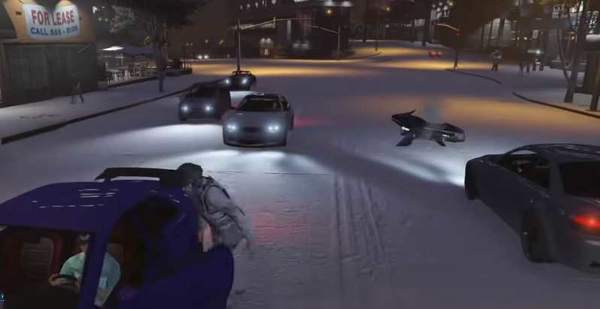 离开银行后,迎面而来的警车需要和追捕者交火。先以银行后门的石柱为掩体进行射击。当击退前线差警之后,再冲向他们开来的警车,以警车为掩体逐步推进到银行院内,在公路上会有四辆警车迎面而来,一边消除行差警一边以相同方式推进。