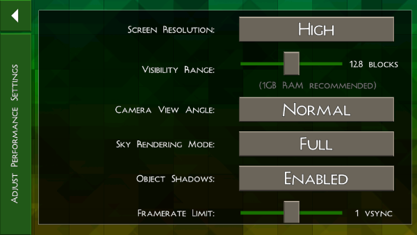 “settings”中的“performance”中,我们还可对游戏中的画质进行自定义设置,对于设备配置较低的玩家,可适当的降低画质,来提高游戏的流畅性