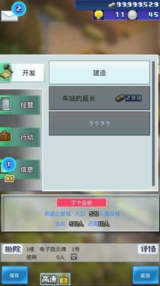 初始楼层:这一层全部用来做月台,也就是让列车运行的楼层,列车在游戏中仅仅是作为运输的工具,如果是使用列车作为主要收入的话就可以赶紧删游戏了,因为不管怎么玩年收入都不会升高太多。