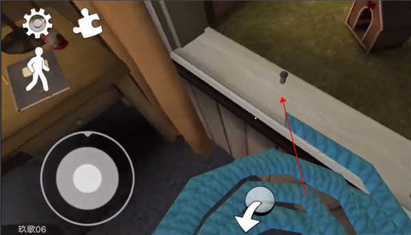 游戏一开始,点击柜子上的酒瓶,酒瓶掉到地上碎了。人物出门后,前往酒瓶碎片的位置,发现绳子断了。接着点击上方的天窗,再点击柜子并爬上去点击天窗两次,人物会摔下来,需要迅速躲到楼下(因为有人要进来了)。等那个人离开后,你就可以出来了。