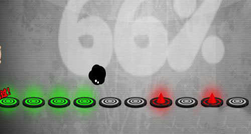 当然《永不言弃》高分只会跳跃还不够,因为闯关的过程中我们还将遇到各种陷阱由于小墨点会一个劲地前进,所以对于面前袭来的陷阱,我们需要机智地进行躲避,对于玩家的反应能力相当考验,容错率极低,只要在对应点位没有正好按下就会以失败告终。