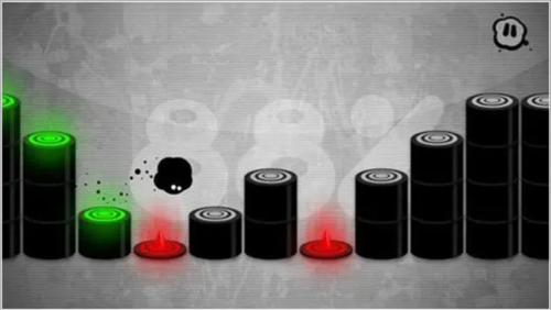 绿色柱子代表安全,红色柱子代表危险,玩家可以点击屏幕控制小黑球进行跳跃,根据游戏节奏不断加快游戏节奏可以获取更高分数,长按屏幕小人会跳动的更远,在面对多个连续红色区域时要使用远跳方式通过。每一次撞墙都会在原地保留一个淡淡的痕迹,跳的快就能获取更多分数,除了熟能生巧以外掌握音乐的律动可以帮助玩家在柱子跳跃间更加灵活。