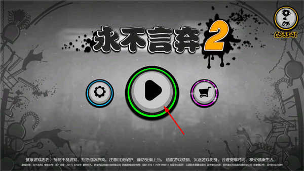 玩家打开永不言弃2游戏,进入主页面,点击开始游戏按钮;