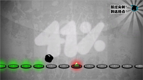 下台阶就不需要点击了,如果你想快点完成任务的话,在安全的地带可以快速点击让小墨球跳跃。出现台阶和悬刺,就更需要把握节奏了,小墨球下落的时候准备好点击跳跃,点击落地时候节奏要统一。快速点击2下,完成落地和跳跃。