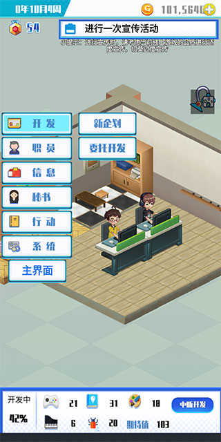 像素风格的游戏公司模拟器无限金币版是一款轻松简单的模拟经营游戏。在游戏中,你将接管一家破产的游戏公司,从零开始,亲手开发各种游戏和拓展新业务以实现盈利。没有任务限制,你可以自由发展公司,雇佣员工和秘书,并培训他们协助你完成更多项目,从而扩大公司规模并增加收入。有兴趣的玩家,快来下载体验吧!