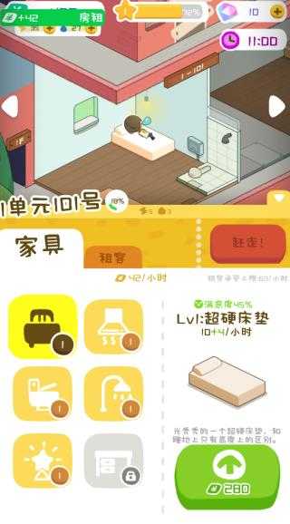 2、玩家可以通过升级房间内的设施来提高租金,或者通过改善周边环境和提升租客满意度来增加租金。