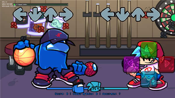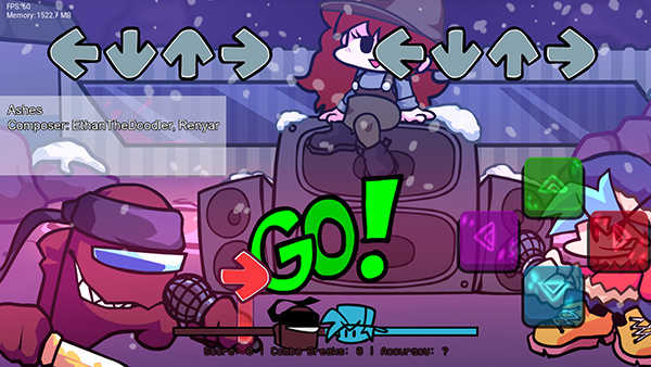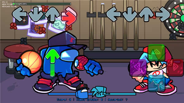 左下角的方向键用于打击操作,游戏中只需轻触屏幕即可激活相应的箭头。在音乐对决中,方向键会从屏幕底部逐渐上升至顶部。当底部的箭头与顶部固定的箭头对齐时,按下屏幕上的相应方向键。保持良好的节奏,持续得分,直至填满屏幕下方的绿条即为通关;若全部变为红条则表示失败。游戏设有简单模式,此时字符出现速度较慢,给予玩家足够的反应时间来选择并按下按钮;然而,在难度较高的情况下,音符的出现速度加快且数量增加,这要求玩家具备更快的反应能力和对歌曲更熟悉的掌握。对于你越熟悉的歌曲,就越能帮助你成功通关。此外,还有一种可以边唱歌边玩游戏的模式。