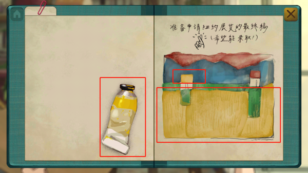 点击画面右下角的画本,查看整幅画的颜色,将对应的黄色区域涂满