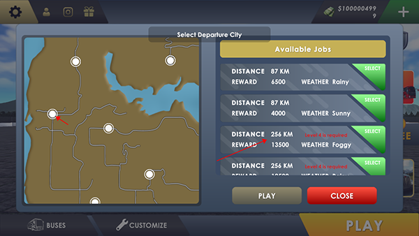选择你想要去的地区,游戏内有各种现实的城内和城外地图:美国(旧金山和德克萨斯)、南美洲(布宜诺斯艾利斯)、欧洲(德国、西班牙、布拉格、圣彼得堡)、迪拜、上海等等,还可以在下方选择当前地区一天中的多个时间和天气条件,点击SELECT即可。