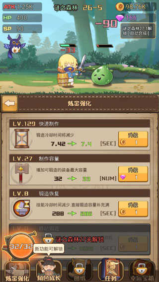 ①炼金强化:主要是锻造方面,通过提升快速制作、制作容量、锻造容量等方面,来减少冷却,增加容量存储来进而实现装备锻造的速率。