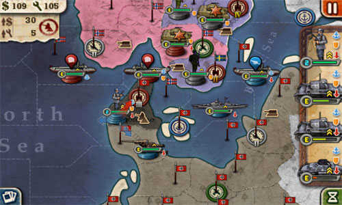 装甲部队攻克丹麦,征一批步兵协助残血的装甲部队防守,战舰占领军港协同防守;