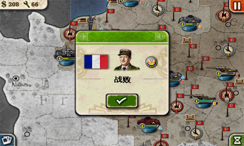 在巴黎组建装甲车,在指挥官坦克的火力支援下,消灭了巴黎城外的戴高乐部队,老戴您赶紧重新制定战术再来被灭一次吧。。