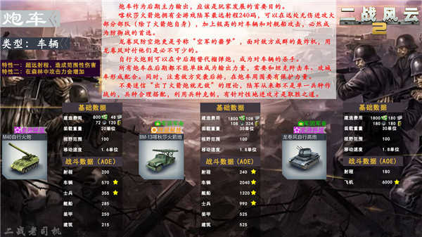 炮兵和步兵一样,防御力极低,反坦克炮防御为0,后两者也只有50,如果被敌方突击后排就不要想着跑了,硬刚到最后吧!