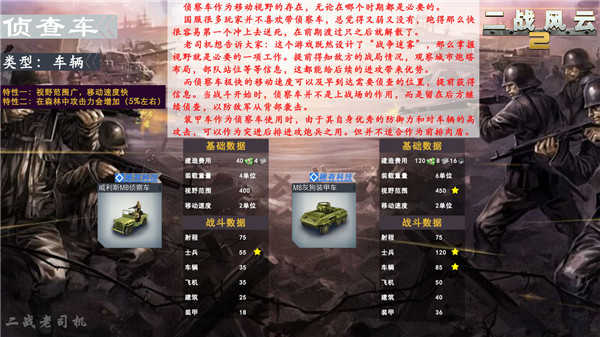 在玩家选择相应的兵种时,主要功能是吸引敌人的注意力,使敌人立即与你交战。利用你的能力迅速撤退,务必避免被敌人追上,否则你可能会遭遇不幸。如果你对游戏足够熟悉,可以在开始时就选择侦察车。